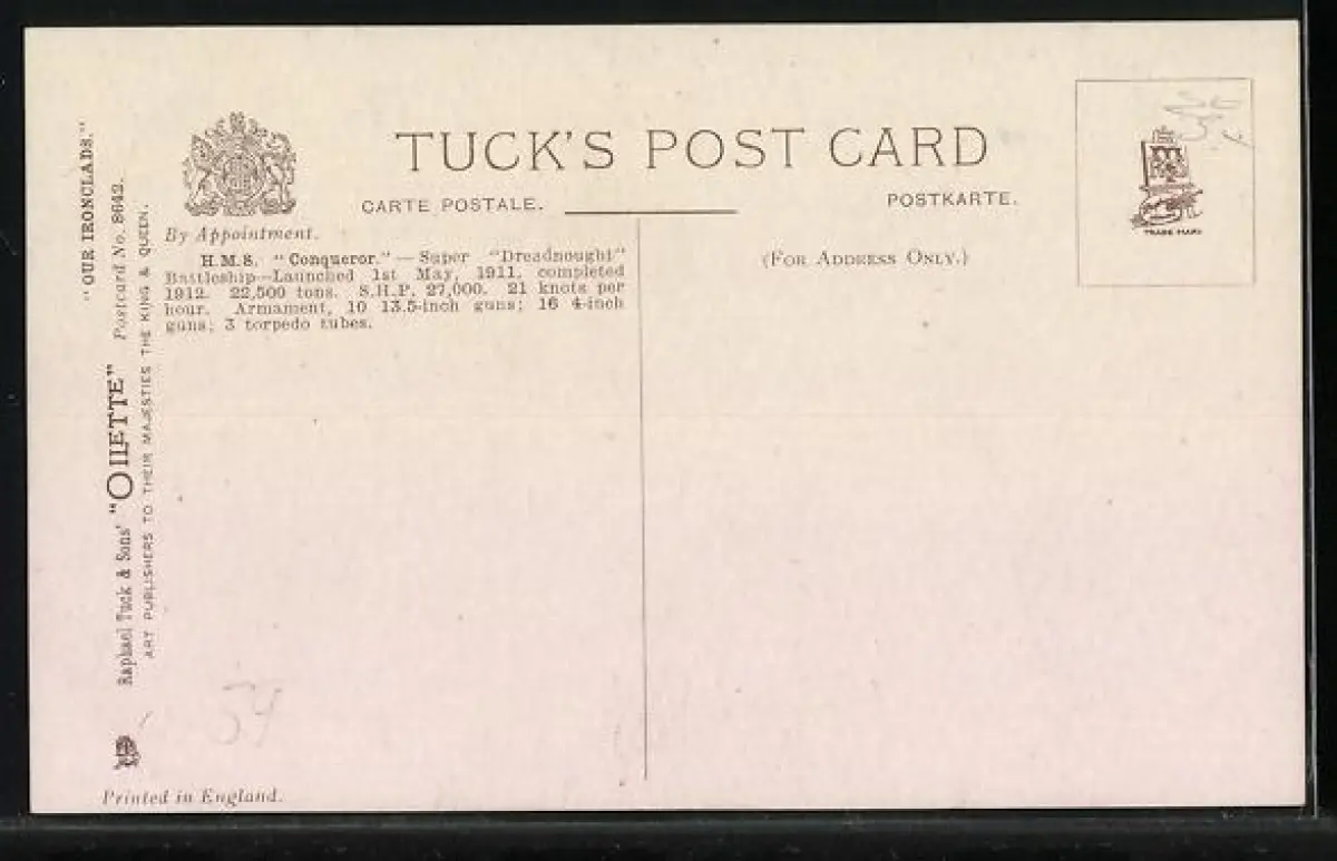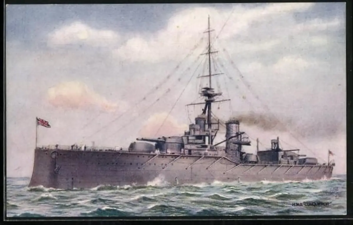 AK Kriegsschiff HMS Conqueror in Fahrt