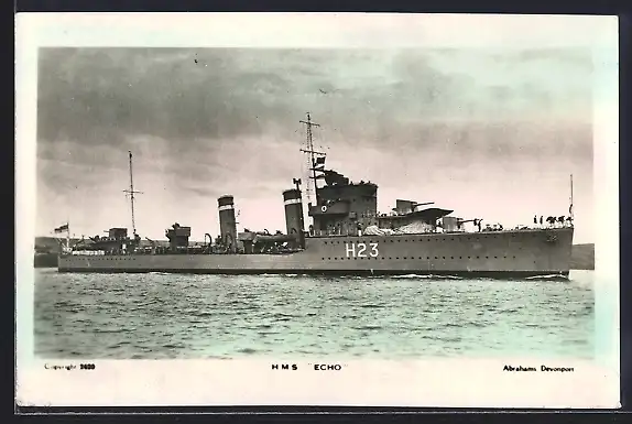 AK Kriegsschiff HMS Echo auf See