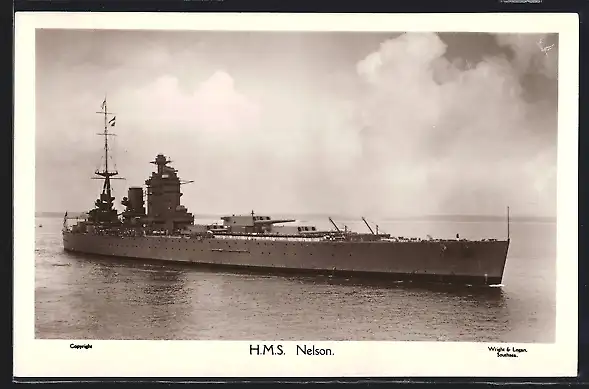 AK Kriegsschiff HMS Nelson bei ruhiger See