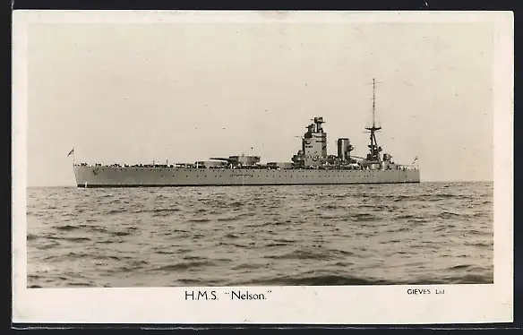 AK Kriegsschiff HMS Nelson bei ruhiger See
