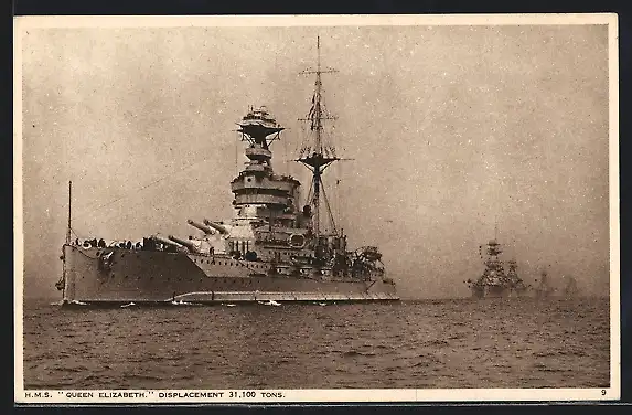AK Kriegsschiff H.M.S. Queen Elizabeth in voller Fahrt