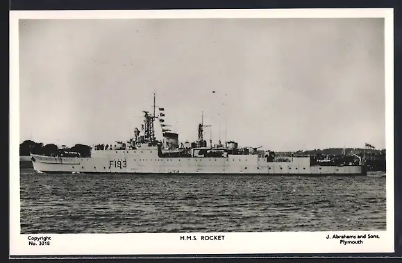 AK Kriegsschiff H.M.S. Rocket vor einer Küste