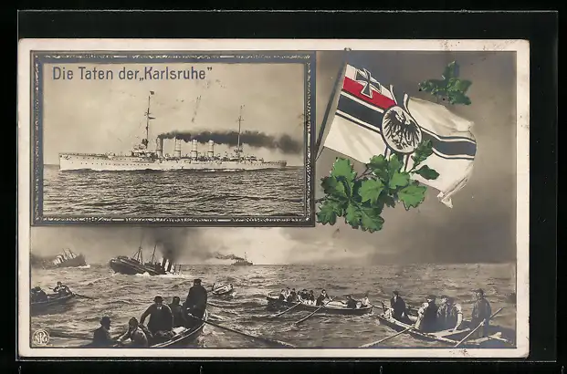 AK Kriegsschiff Karlsruhe in Fahrt, Reichskriegsflagge