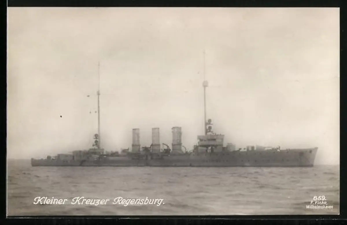 AK Kriegsschiff Kleiner Kreuzer Regensburg auf See
