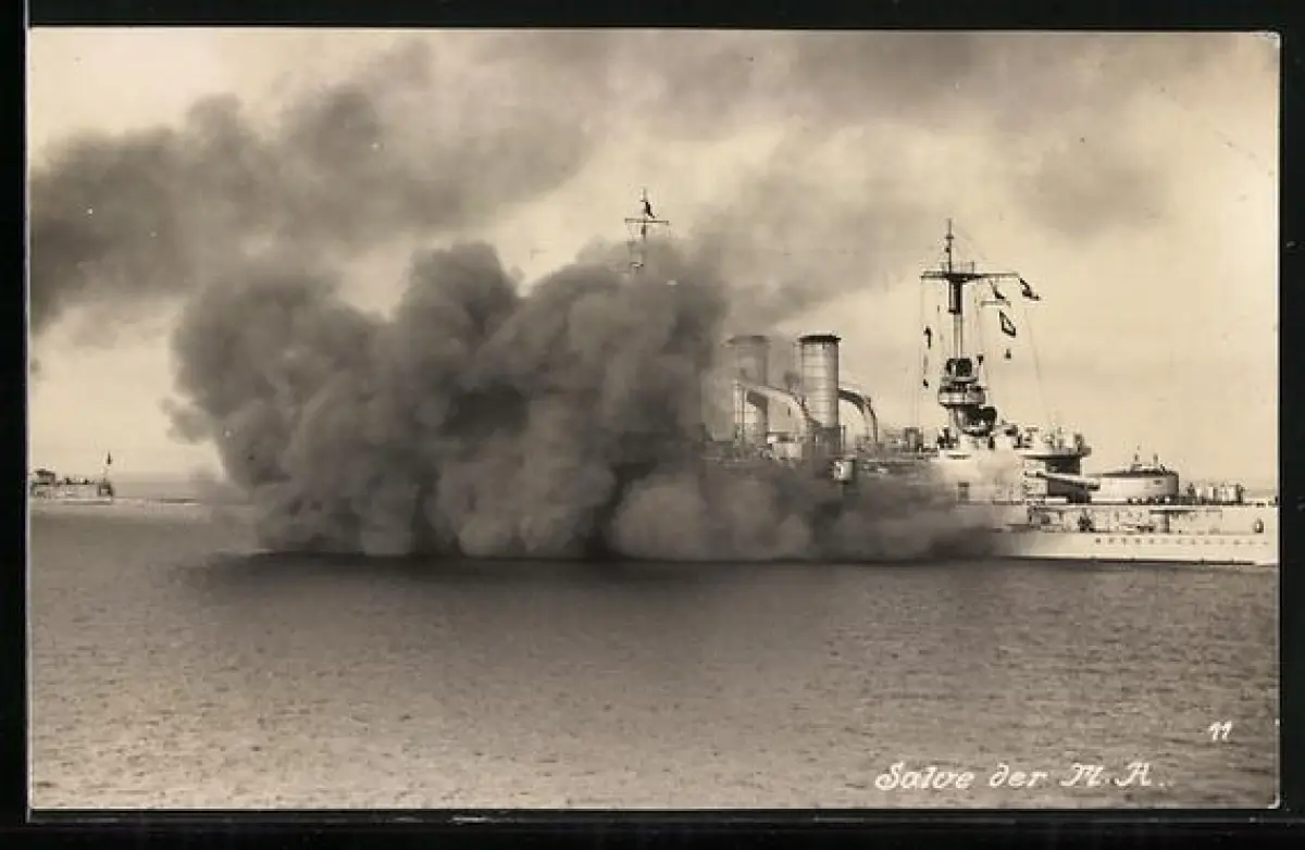 AK Kriegsschiff Panzerkreuzer Schleswig Holstein, Salve