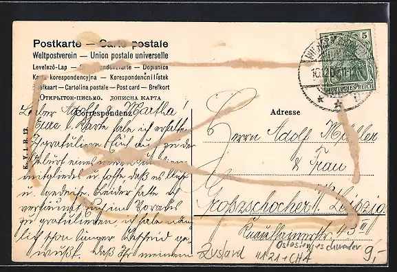 alte Ansichtskarte, gelaufen 1907, rückseitig Klebe- und Papierreste, guter Zustand