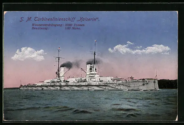 AK Kriegsschiff SM Turbinenlinienschiff Kaiserin vor der Küste
