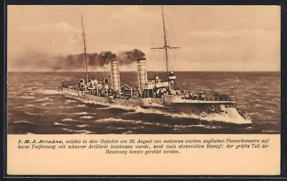 AK Kriegsschiff SMS Ariadne pflügt durch die Wellen