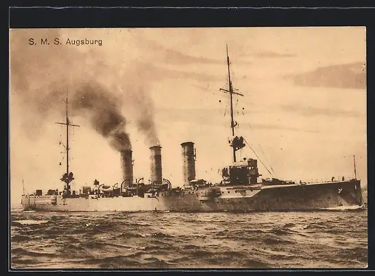 AK Kriegsschiff SMS Augsburg unter Volldampf