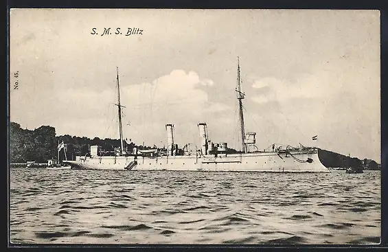 AK Kriegsschiff SMS Blitz liegt vor Anker