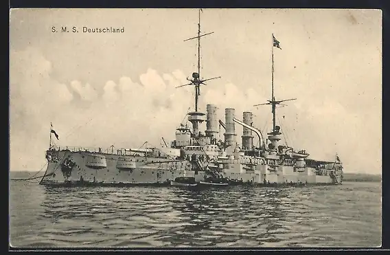 AK Kriegsschiff SMS Deutschland mit Beibooten auf dem Wasser
