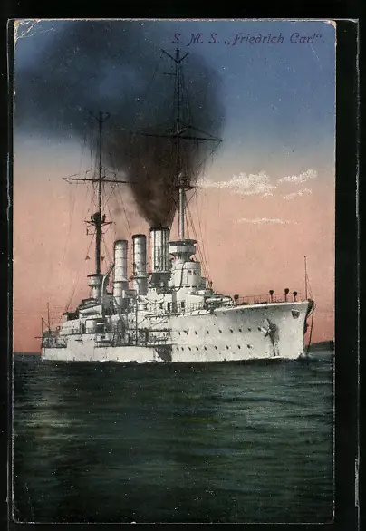 AK Kriegsschiff SMS Friedrich Carl in Fahrt