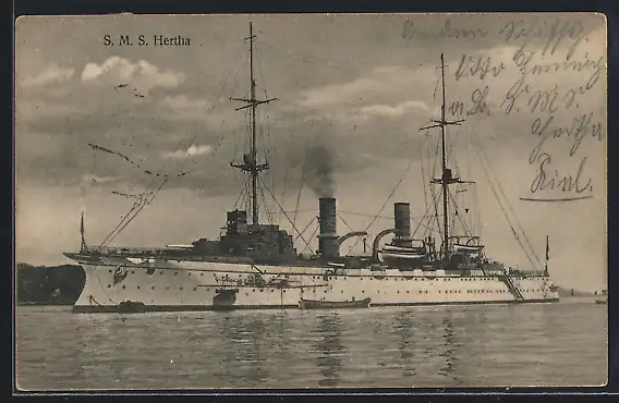 AK Kriegsschiff SMS Hertha des Ostasiengeschwaders liegt vor Anker