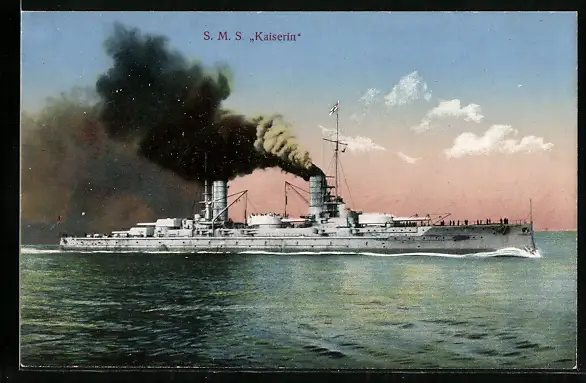 AK Kriegsschiff SMS Kaiserin gibt Volldampf