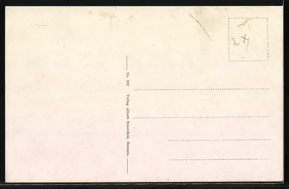 Personenbezogene Daten auf der Rückseite der Karte wurden durch blauen Textmarker unkenntlich gemacht. Die blauen Stellen sind auf die Vorderseite durchgeweicht und wirken sich negativ auf das Postkartenfoto aus