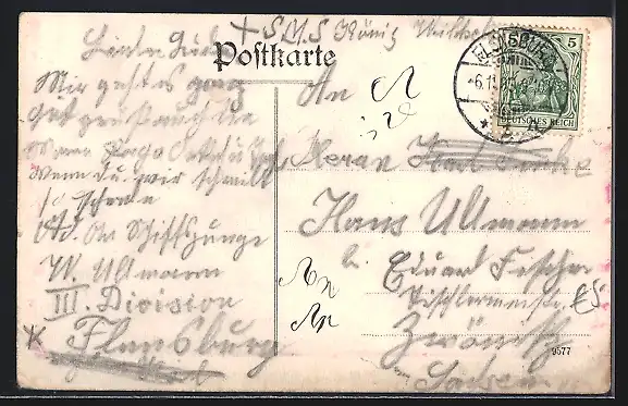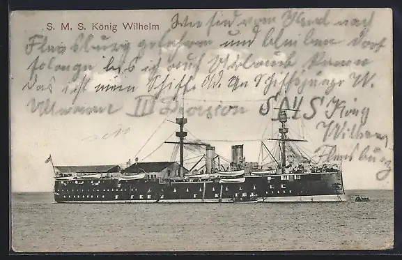 AK Kriegsschiff SMS König Wilhelm liegt vor Anker