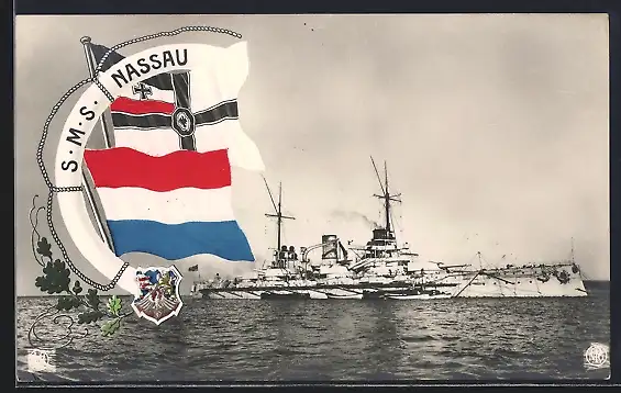 AK Kriegsschiff SMS Nassau, Reichskriegsflagge