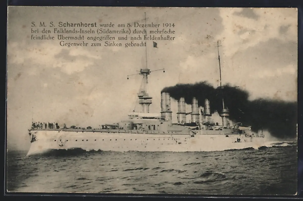 AK Kriegsschiff SMS Scharnhorst des Ostasiengeschwader, gesunken am 8. Dezember 1914