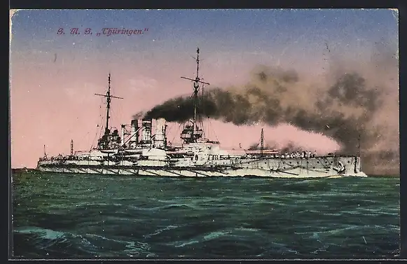 AK Kriegsschiff SMS Thüringen in voller Fahrt