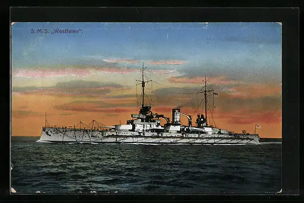AK Kriegsschiff S.M.S. Westfalen in voller Fahrt