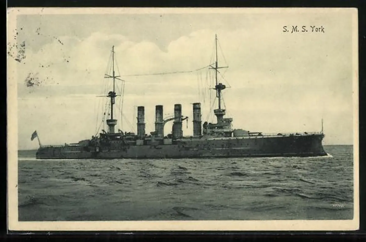 AK Kriegsschiff SMS York auf See