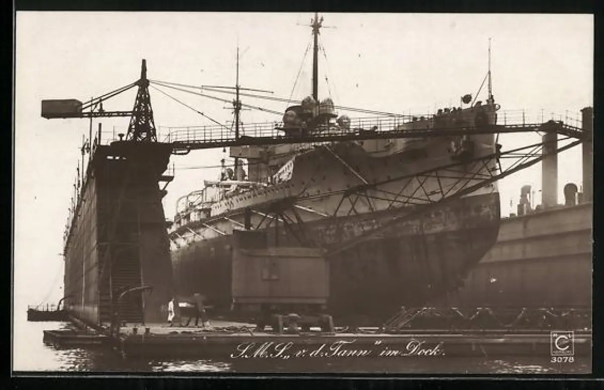 AK Kriegsschiff SMS v. d. Tann im Dock
