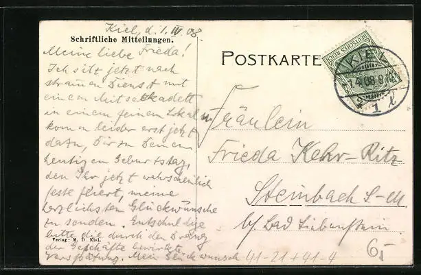 alte Ansichtskarte, gelaufen 1908, guter Zustand