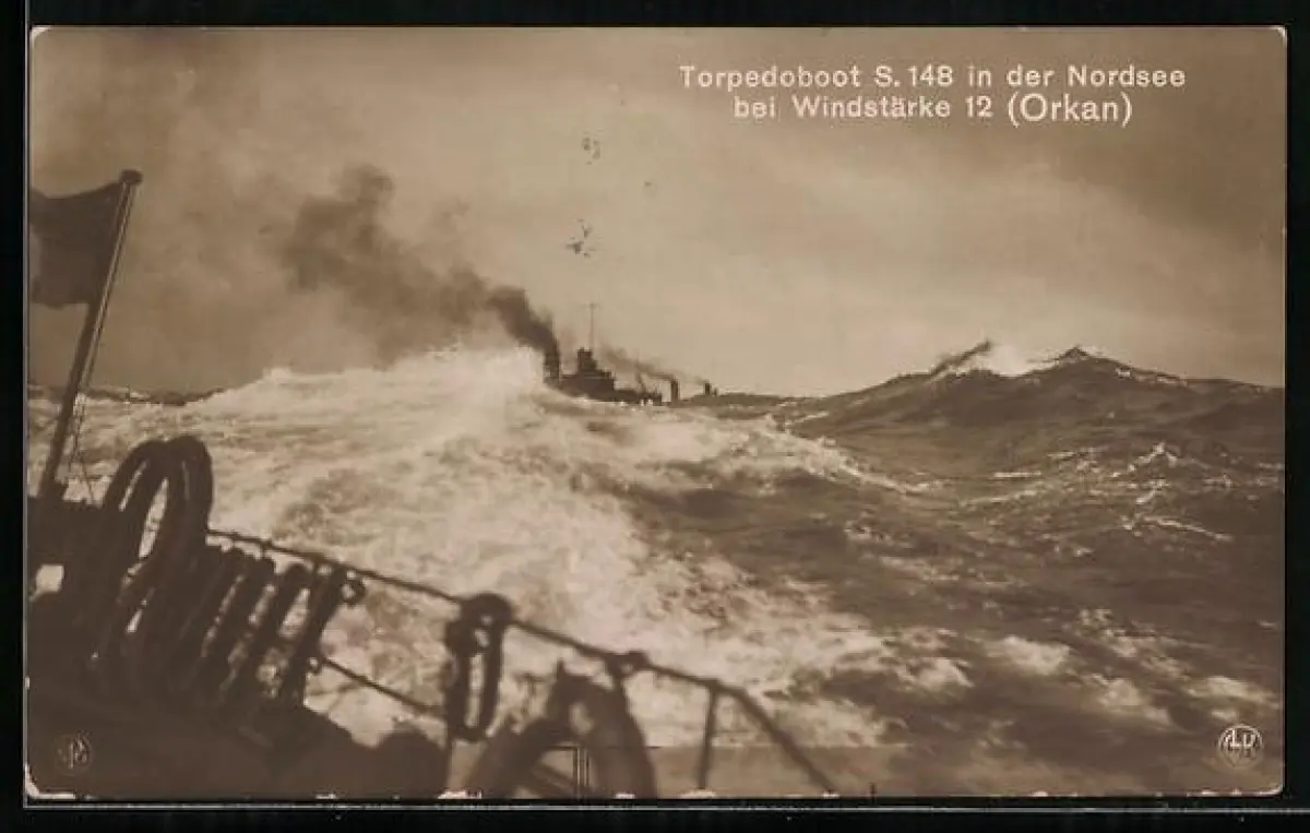 AK Kriegsschiffe, Torpedoboot S-148 bei Windstärke 12 in der Nordsee