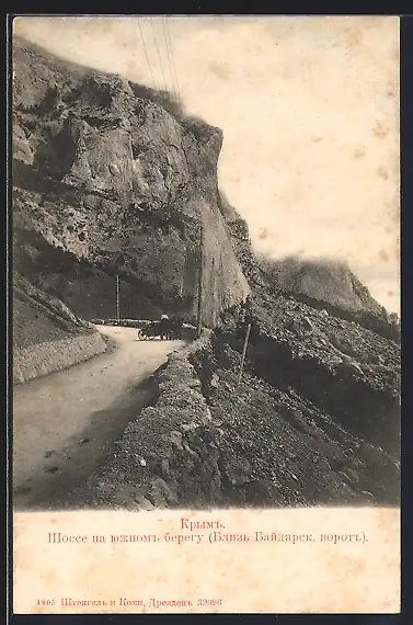 AK Krim, Strasse entlang der Südküste mit Felswand