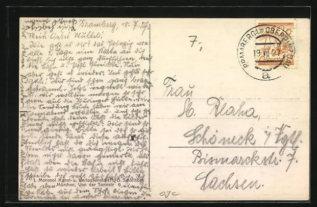 alte Ansichtskarte, gelaufen 1927, guter Zustand