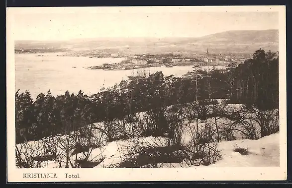AK Kristiania, Totalansicht vom verschneiten Berg aus