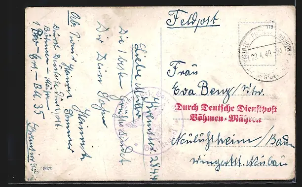 alte Ansichtskarte, gelaufen 1940, Eckknicke re., Ecken bestoßen, guter Zustand