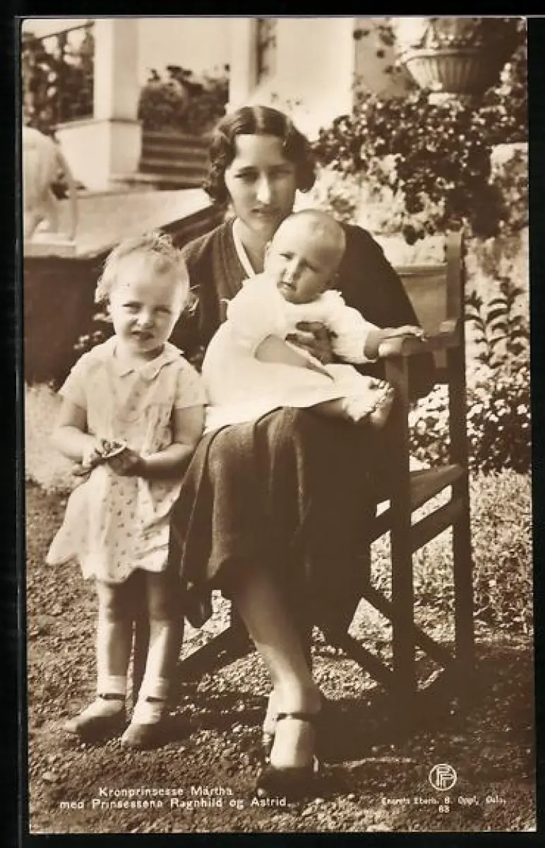 AK Kronprinsesse Märtha med Prinsessene Ragnhild og Astrid von Schweden