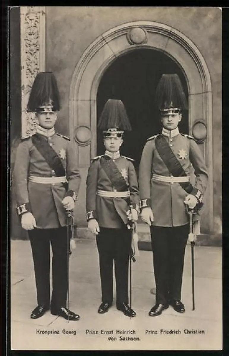 AK Kronprinz Georg, Prinz Ernst Heinrich und Prinz Friedrich Christian von Sachsen