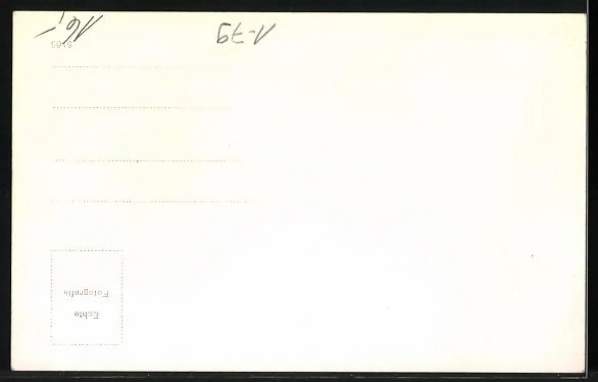 Personenbezogene Daten auf der Rückseite der Karte wurden durch blauen Textmarker unkenntlich gemacht. Die blauen Stellen sind auf die Vorderseite durchgeweicht und wirken sich negativ auf das Postkartenfoto aus