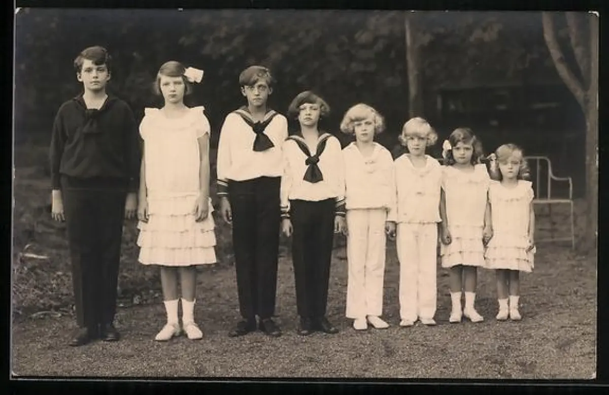 AK Kronprinz Otto von Österreich steht mit seinen Geschwistern in einer Reihe