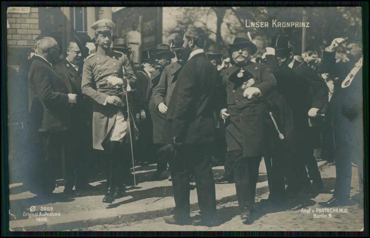 Berlin zeigt hier ein Foto des Kronprinzen während eines öffentlichen Besuchs im Jahr 1908, aufgenommen von Photochemie Berlin.