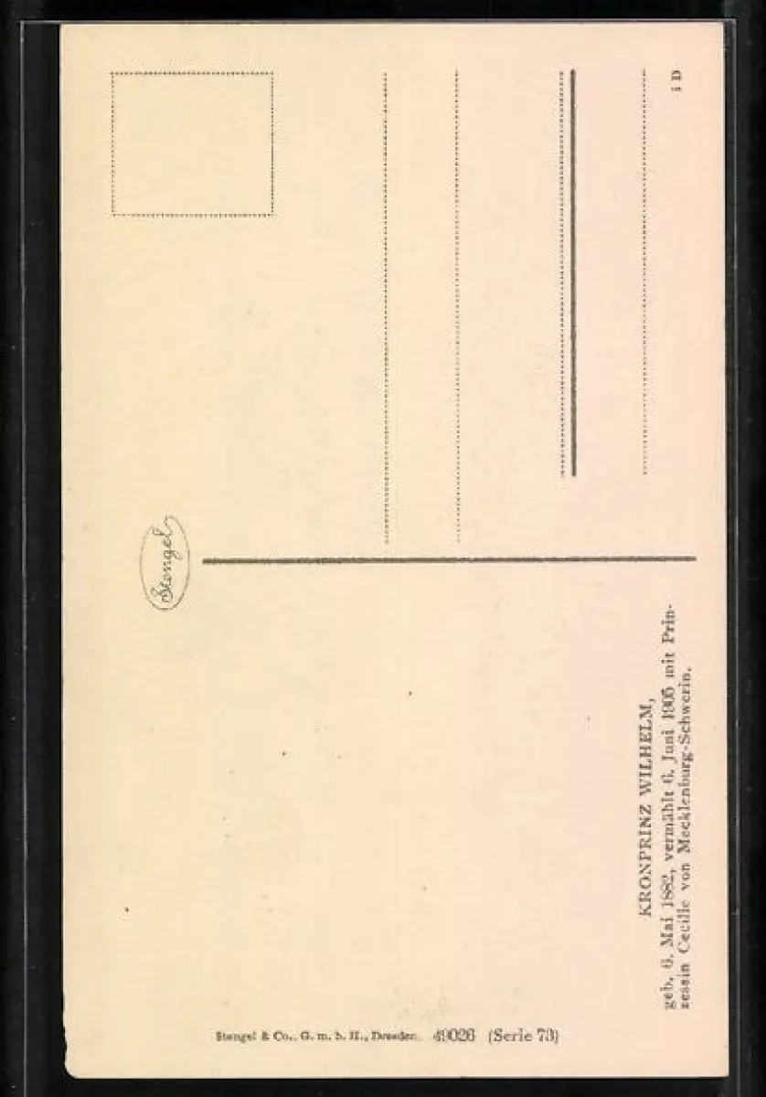 AK Kronprinz Wilhelm von Preussen, Geb. 1882, Vermählt 1905 mit Prinzessin Cecilie von Mecklenburg-Schwerin