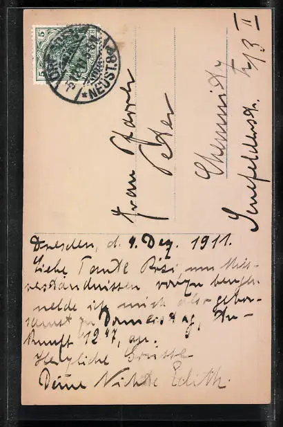 alte Ansichtskarte, gelaufen 1911, guter Zustand