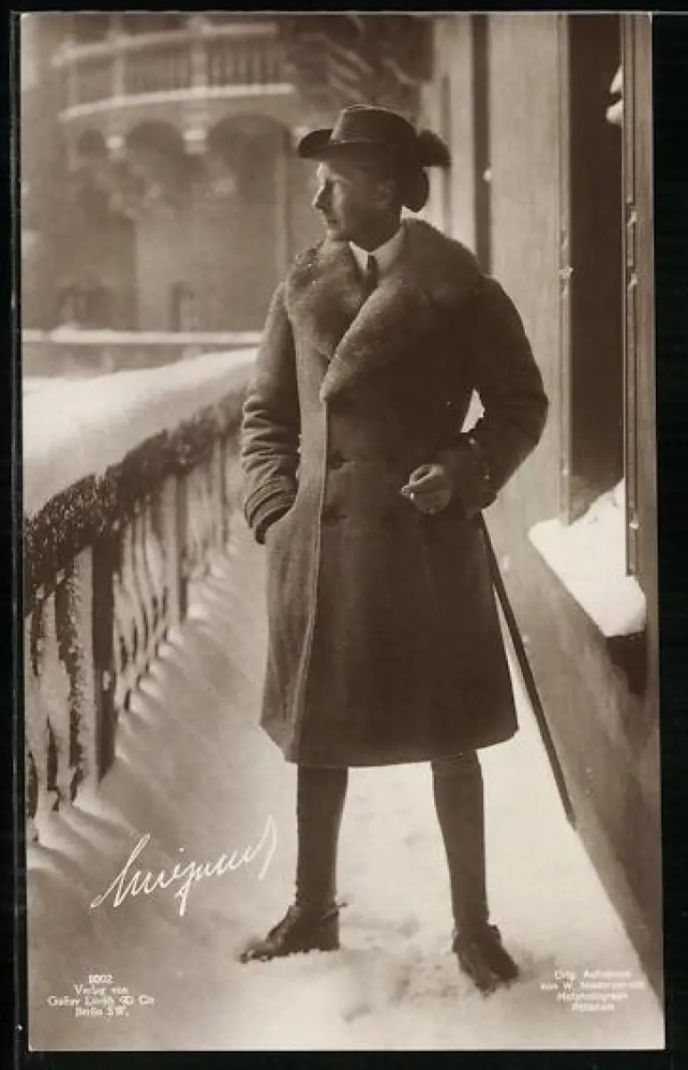 AK Kronprinz Wilhelm von Preussen im Mantel mit Hut im Winter