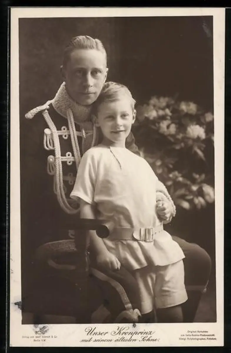 AK Kronprinz Wilhelm von Preussen in Husarenuniform mit Sohn Prinz Wilhelm