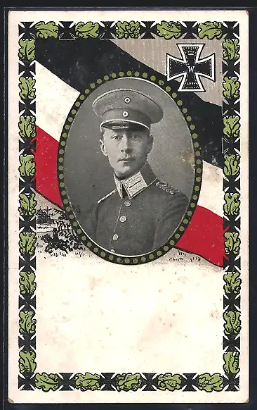AK Kronprinz Wilhelm von Preussen in Uniform mit Schirmmütze im Passepartoutrahmen