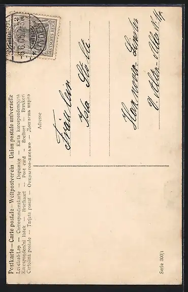 alte Ansichtskarte, gelaufen 1905, Eckknick li. unten, guter Zustand