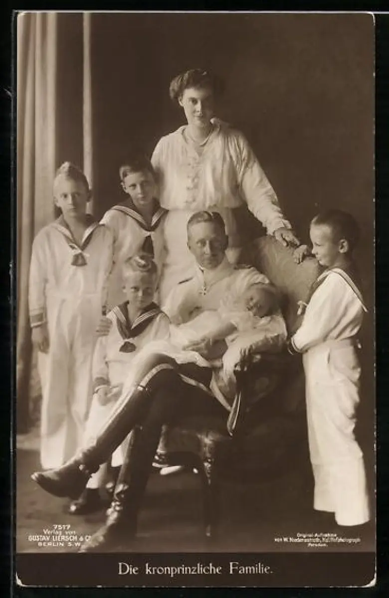 AK Kronprinz Wilhelm von Preussen mit Gemahlin und den gemeinsamen 5 Kindern