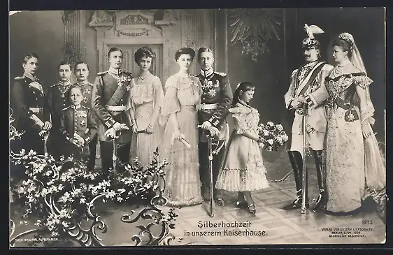 AK Kronprinz Wilhelm von Preussen nebst Gemahlin feiern Silberhochzeit mit ihrer Familie