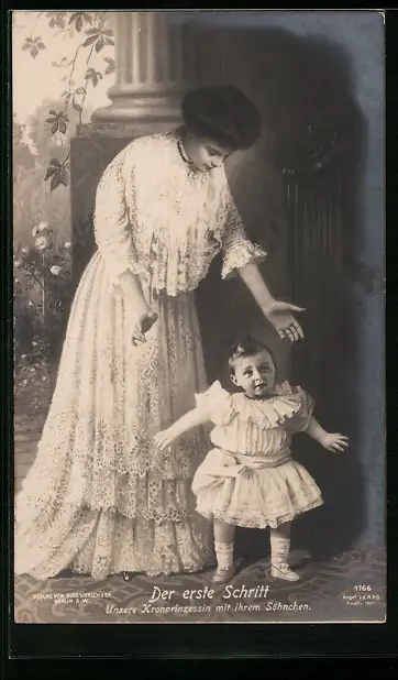 AK Kronprinzessin Cecilie begleitet den ersten Schritt des Söhnchen
