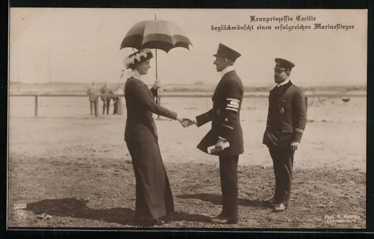 AK Kronprinzessin Cecilie beglückwünscht einen erfolgreichen Marineflieger