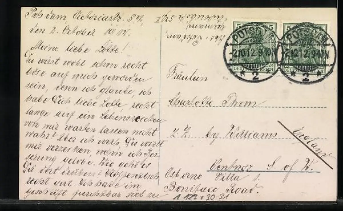 alte Ansichtskarte, gelaufen 1912, Stempelspur, guter Zustand