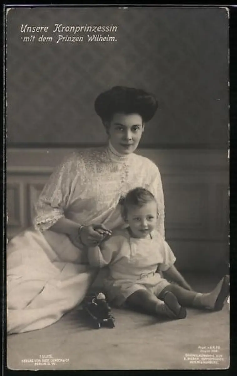 AK Kronprinzessin Cecilie mit Prinz Wilhelm beim Spielen