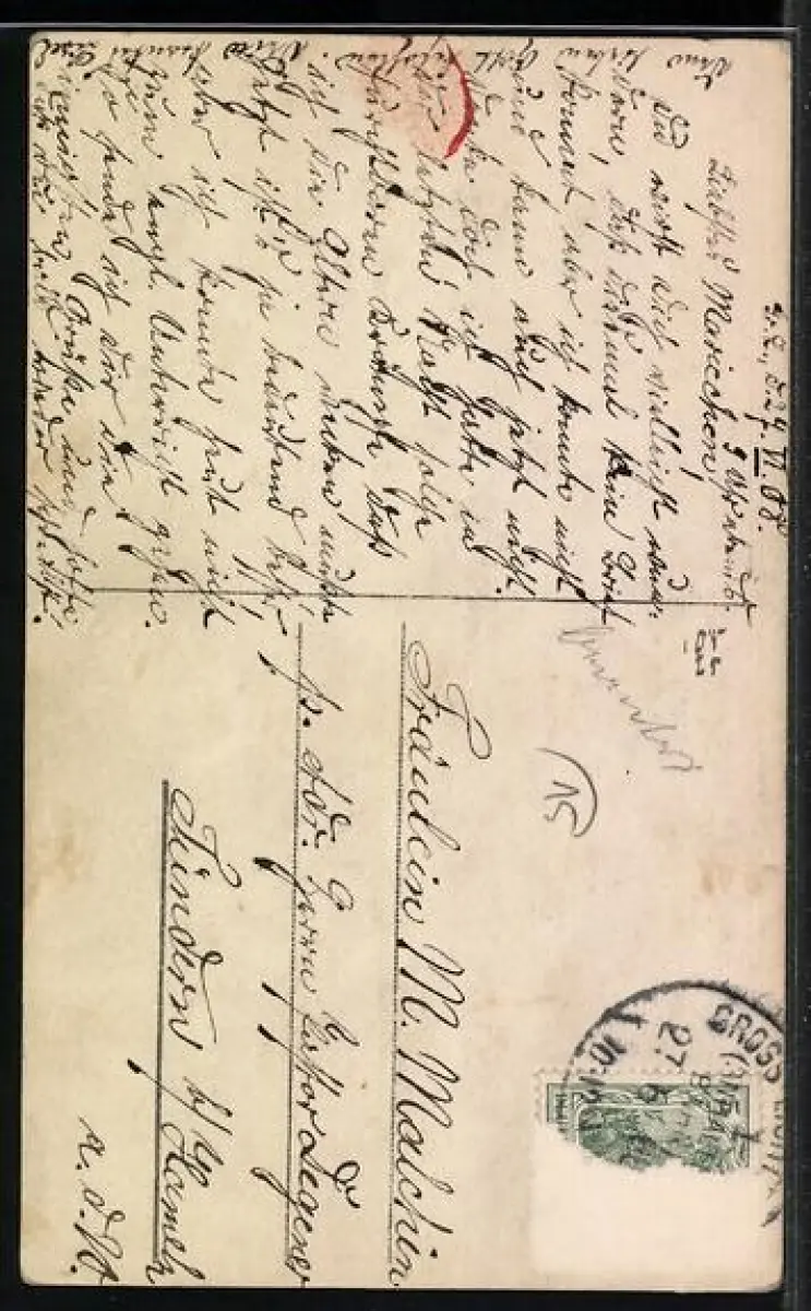 alte Ansichtskarte, gelaufen 1908, Briefmarke entfernt, guter Zustand